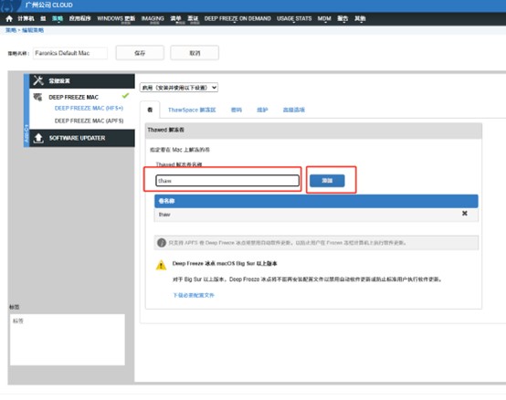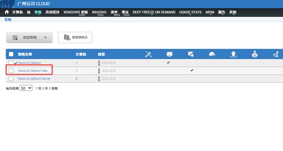 首先进入冰点还原Deepfreeze 冰点云控制台,找到mac的策略(有客户可能是自己建的mac策略则用自建策略)