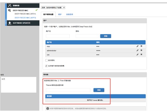 添加后同步策略下去即可,如果是HFS+格式的电脑则选择对应策略然后同样的地方添加上解冻卷的名称