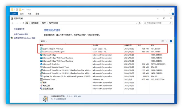 去Deepfreeze冰点还原企业版客户端看了下安装包已到临时目录并且控制面板查看已成功安装