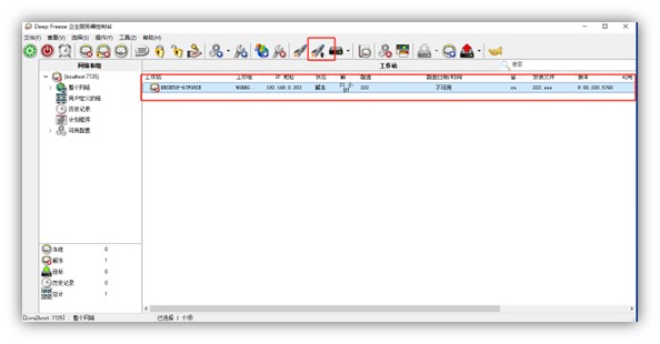 打开Deepfreeze冰点还原企业版控制台,选择要部署的客户端,然后选择上面的推送并启动