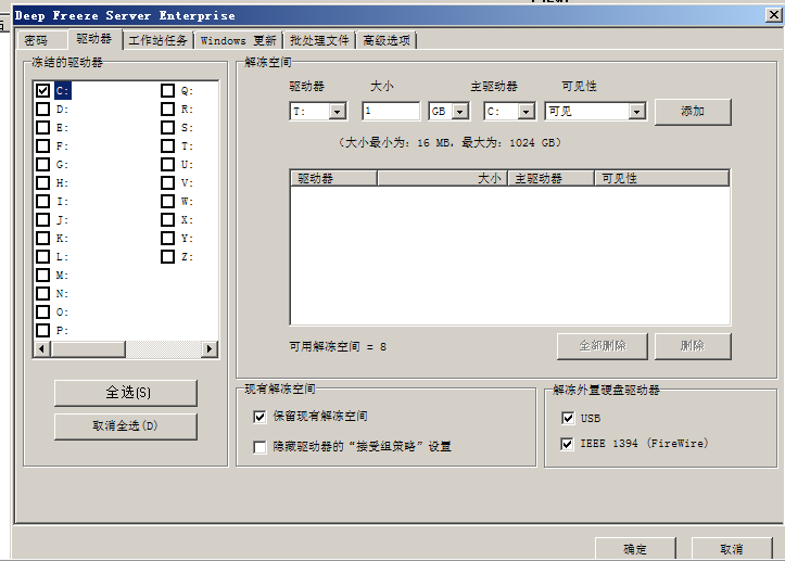 选择还原盘符,一般默认会全选,这里我们选择C盘即可,或者点击需要保护的其他磁盘。