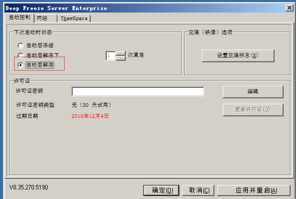 下一步到这里需要输入许可证密钥,在官网点击购买页面可以购买到冰点还原许可证密钥,如果还没有购买可以点击使用评估版(评估版是30天的免费使用期限)。