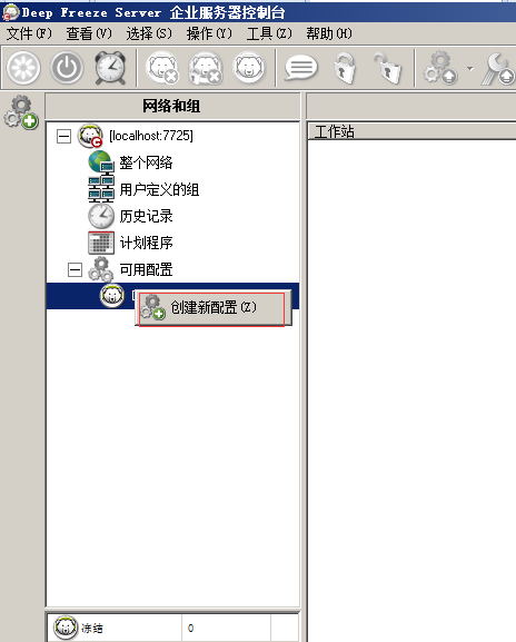 依次打开出现Deep_Freezed右击出现创建新配置,选择创建新配置。