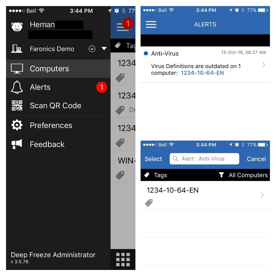 7. Deep Freeze管理员移动应用程序中的移动警报