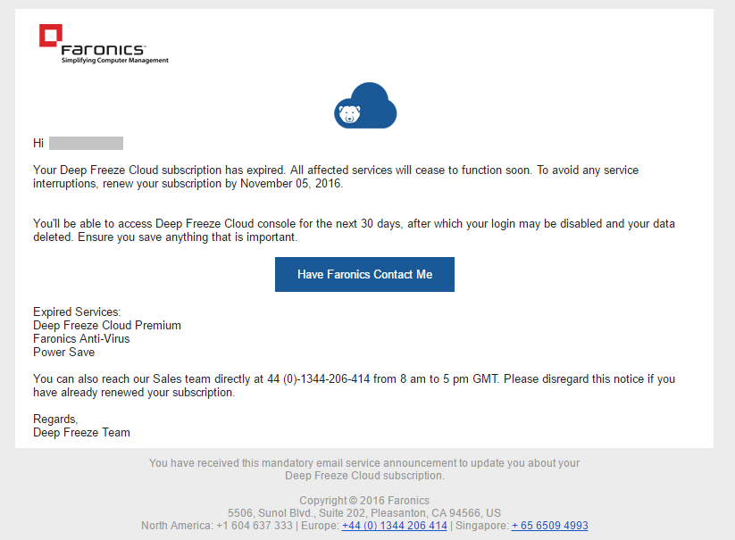 最后,我们在订阅到期前已自动通知客户。 我们会在到期前2个月发送几封电子邮件。 请参见下面的示例: