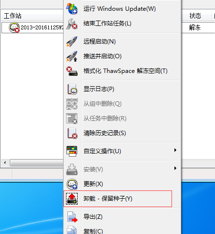 首先解冻冰点还原,右键需要卸载的客户端,选择卸载-保留种子