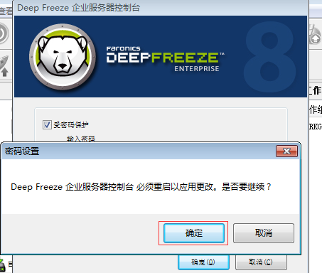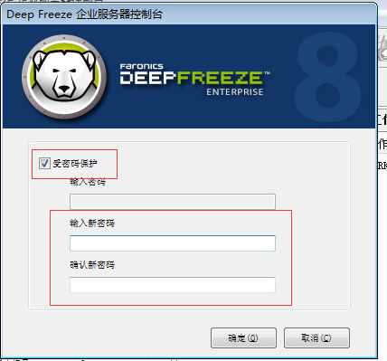 冰点还原精灵DeepFreeze企业版控制台密码保护作者: 冰点还原 / 2017-01-04 密码保护提供了一层额外的安全保护,供管理员选择使用,每次打开控制台都需要输入密码,保证控制台的操作安全。 步骤: 1.打开冰点控制台 选择文件-点击密码保护 2.输入密码 勾选受密码保护,输入密码。 此时重新打开控制台会提示输入密码