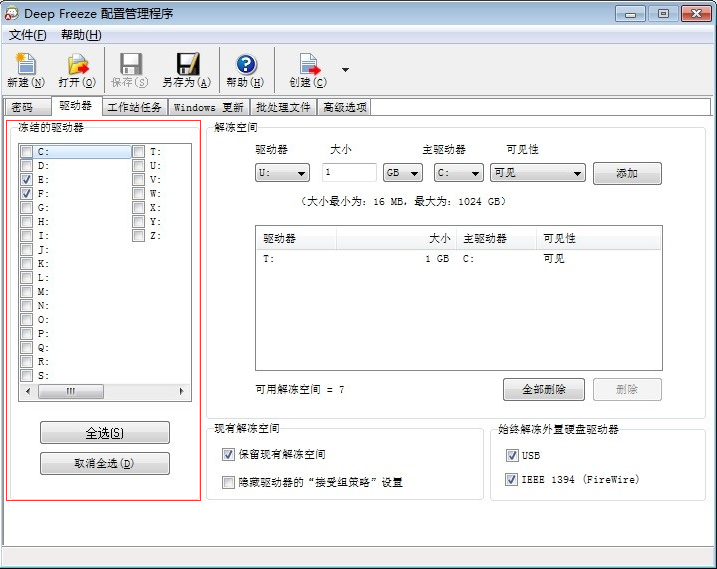 冰点还原精灵DeepFreeze企业版配置”驱动器”选项卡-Frozen 驱动器
