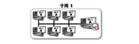 在此环境中,所有客户端计算机均作为控制台计算机位于同一子网中。此环境并不需要远程控制的控制台(虽然也可以使用此类控制台)。此示例未使用远程控制台。这是一个最简单的网络环境,配置起来也最为容易。