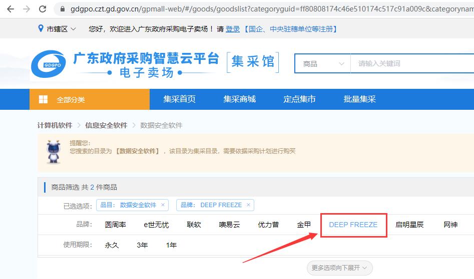冰点还原deepfreeze产品进入广东省政府采购智慧云平台