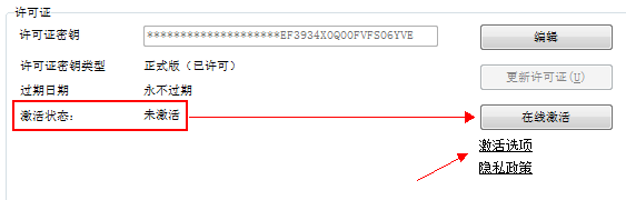 前面的永不过期是针对输入的许可证密钥的,表示这个密钥是永不过期的长期密钥,但没有在线激活,需要点击“在线激活”,通过官方验证后才能激活使用。