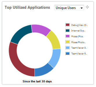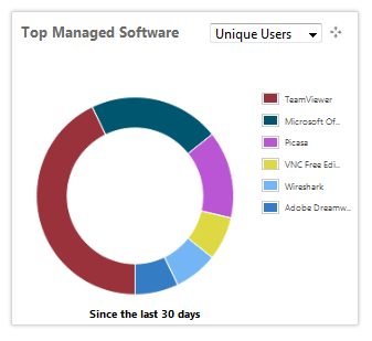 了解软件的利用水平,以便优化软件部署 监控软件的使用时长、使用软件的计算机数量和使用软件的人数 在详细报告中显示软件使用情况数据,并在仪表板动态微件中突出显示利用最充分的软件 |