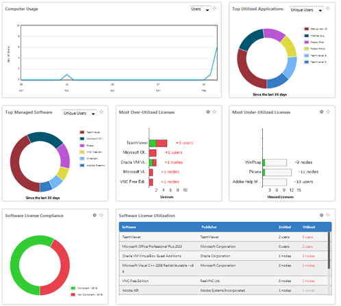 | 使您对 IT 资产使用情况数据一目了然, 了解哪些软件资产过度部署或利用不充分 确保 IT 资产部署在最有需要的地方 |