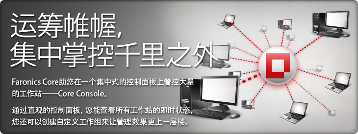 防护原理 Faronics Core是专为IT专家开发的多功能工具。这是一款简单一用的远程管理工具,让您能够轻松集中管理您的所有终端电脑。软件内有企业级别的部署及管理功能,可以根据您单位的需要量身定制,Faronics Core定是您节省时间削减成本的最佳选择。而且虽然看起来难以置信,但所有的Faronics解决方案都会附带Faronics Core软件——没错,这意味着您无需额外支出。 如果手边有大量的工作站需要管理,那么能够通过Faronics Core内直观的控制面板对于不同的解决方案进行管理的方式,定能得到IT专家们的好评。工作站的一切信息,例如名称、在线状态、操控系统以及其他信息都能从Core Console中轻易调阅。您还可以根据自身安排创建自定义工作组来让管理工作变得更为轻松。Faronics Core可以同时运行多款产品的loadin(插件),方便您及时了解您在Faronics软件方面进行的投入给您带来的丰厚回报。 把所有繁重工作交给Faronics Core,享受休闲时光。只需点击几下鼠标,您就可以通过Faronics Core来执行软件部署等任务。您还可以为其安排计划任务,让其在数个小时之后自动运行。您设置过后就可以放心离开。您也可以创建自定义的策略来根据自身需求对Faronics产品进行量身定做的配置。您的策略可以重复使用,能够简化新工作站的快速配置。Faroncis Core让轻松安装配置Faroncis软成为可能,但其功能远不止如此。您还可以安装第三方软件,更新Windows及执行您自己的自定义配置脚本。 Faronics Core内建有强大的报表机制,能为您提供有价值的统计及情报。您可以在单独的工作站、属于某个工作组内的电脑,甚或通过多个Faronics Core Server在其他地区的电脑上上运行详细报告。Faronics的报表都可以导出,同时还可以方便地公布到网上或在电子表格中修改。每一款Faronics产品都有一系列的内建报表,让您能够了解工作站的详细信息。 |